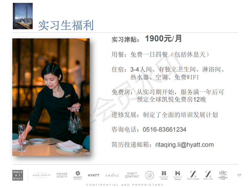 我校酒店管理专业与徐州苏宁凯悦酒店签订订单培养协议,酒店管理专业学生大三在徐州苏宁凯悦酒店实习一年,酒店在正常发放实习补贴的同时补助一年学费:4700元。完成三年学业后且表现良好,凯悦酒店将优先录用,并重点培养。