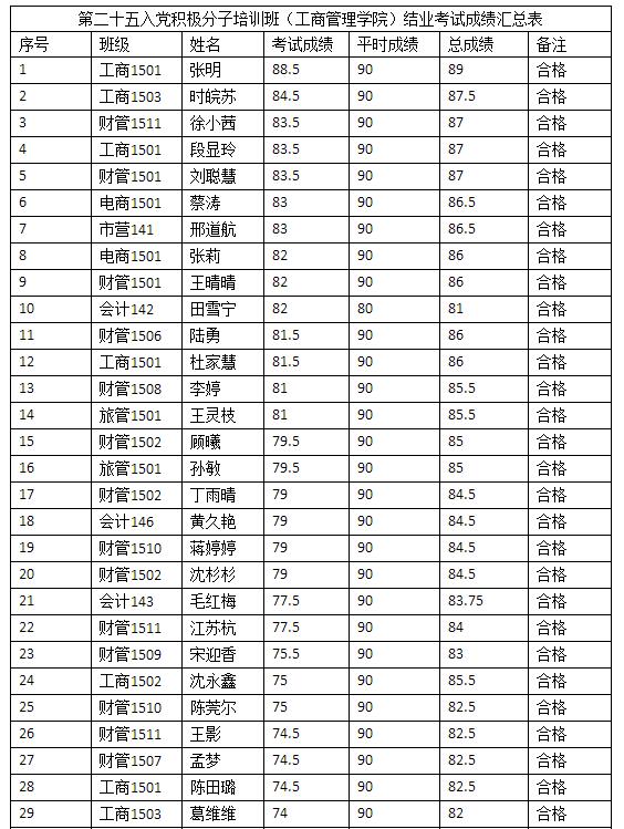 工商管理学院党总支第二十五期入党积极分子结业学院名单公示