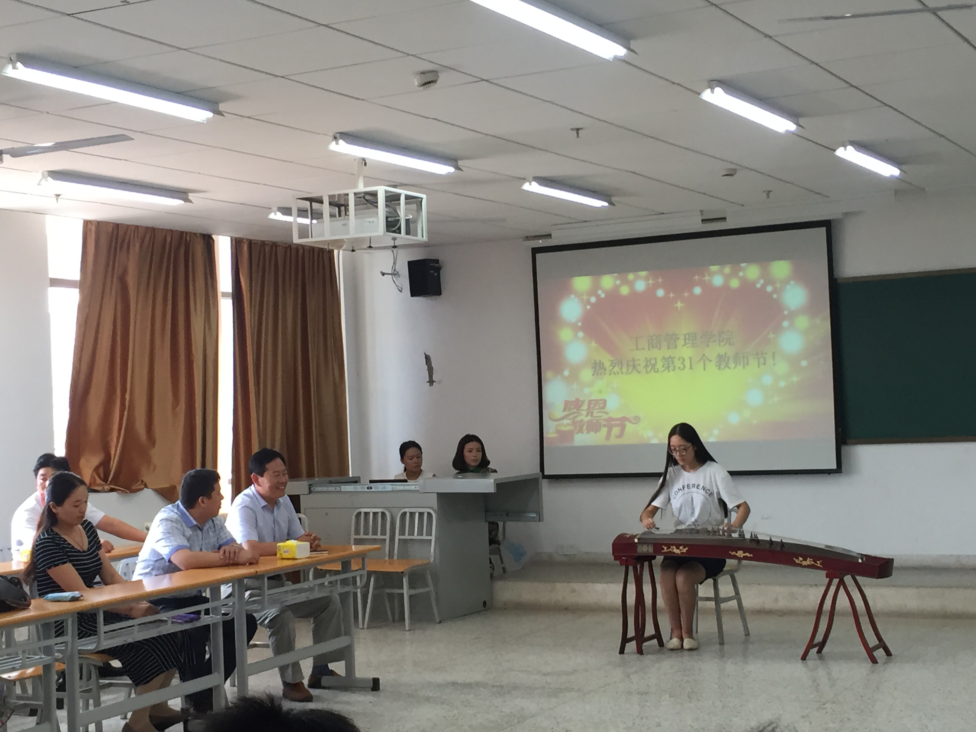 9月9日下午,主楼306教室充满了欢声笑语,这是工商管理学院庆祝第三十一个教师节举办的优秀教师事迹报告会暨联欢会的现场,学院30余名老师欢聚一堂,庆祝自己的节日。大会首先由陈祥章书记致辞,他用热情洋溢的讲话表达了对全体老师平日里辛苦付出的感谢,号召大家践行“三严三实”,争做“四好”老师。随后,同学们向荣获了校“优秀教师”、“优秀班主任”称号的张娴等七位老师献上了美丽的康乃馨,表达了对老师的感激之情。