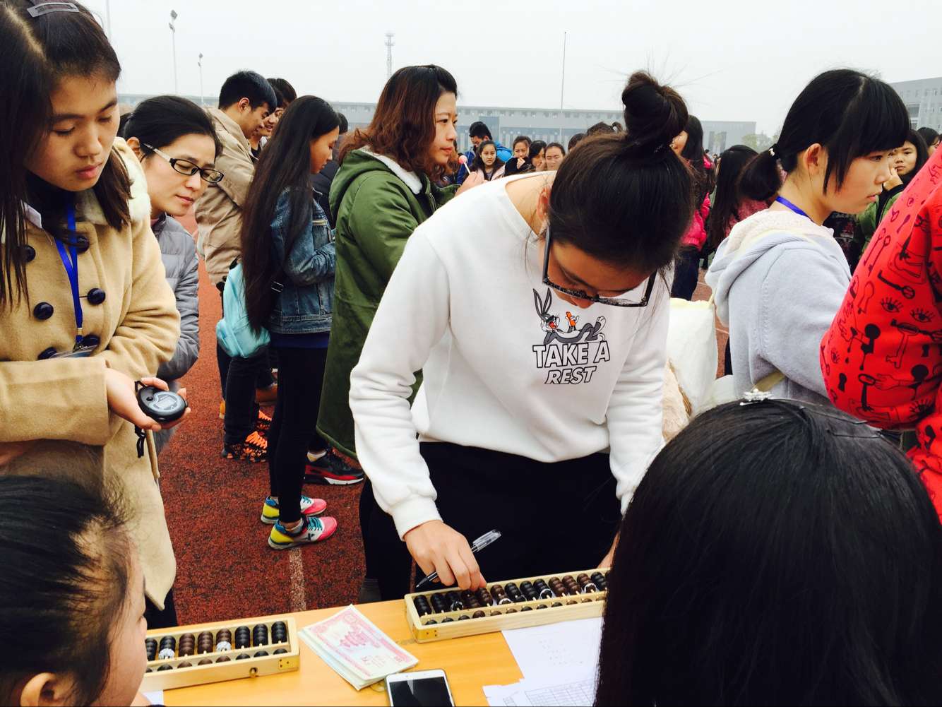 本次趣味运动会有集体项目和个人项目两种,分别有拔河、齐心协力、听声传球等,每项活动都考验着班级的凝聚力和学生们个人的运动能力。除了这些常规项目以外,我院结合专业特色,新增了几项“专业技能运动项目”:针对会计专业的“手指动起来”,即让参赛者在一段距离的跑步之后进行点钞,再跑一段距离后进行珠算,并把现在最热门的“指压板”也用在比赛中,增加了不少趣味性;针对酒店旅游专业的“托盘赛跑”,参赛者手捧酒店专用托盘赛跑,托盘上有五个盛满水的高脚杯,洒出的水最少且用时最短者获胜,等等,学生兴趣高涨。