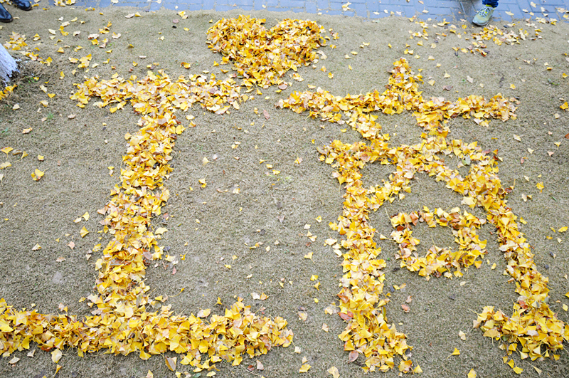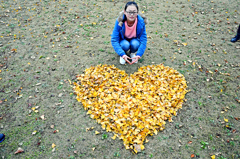 冬天到了,校园里虽然少了一些生机,却因为落叶缤纷而多了一些美好的意境,在别人看来,落叶飘在地上就等同于垃圾,跟泥泞混在一起,给清扫带来很大的麻烦,但是在一些学生的眼里,这些五彩缤纷的落叶就如同一根一根的彩色画笔,稍微动一动手,就可以变成装点校园的艺术作品。11月22日,趁着天空暂时不再飘雨,工商管理学院学生会的一群“创意画家”来到学校的各个角落,他们一边清扫落叶,一边把落叶堆积起来,摆成各种大家喜爱的图案,搞笑的“喜羊羊”,萌态百出的“小鲸鱼”,暖暖的“爱心”,红为底黄为边的“花朵”......最后还拼成了一个大大的代表了学院的“工商”二字。学生们以这种方式告知周围所有同学,劳动中的每一个细节都可以发现美的存在,只需要换个角度,换一种心情,就有惊喜等待着所有人的发现。