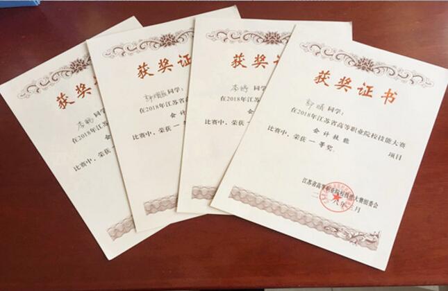 3月23日,江苏省高等职业院校技能大赛“新道杯”会计技能竞赛在江苏财经职业技术学院拉开帷幕;共有来自全省高职院校62支代表队248名参赛选手参加比赛,成为队伍最多、竞争最激烈的赛项。我校会计与审计专业学生郭晴、李畅、郭熠辰、李婷等4位同学取得团体第5名的优异成绩,荣获一等奖,魏贤运、陆群老师荣获优秀指导教师奖。