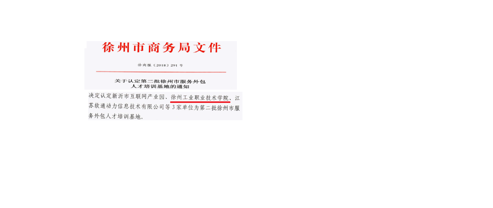 12月12日,徐州市商贸局发布文件公布了第二批徐州市服务外包人才培训基地名单,全市共有三家单位入选,除了我校以外,还有新沂市互联网产业园和江苏软通动力信息技术有限公司。