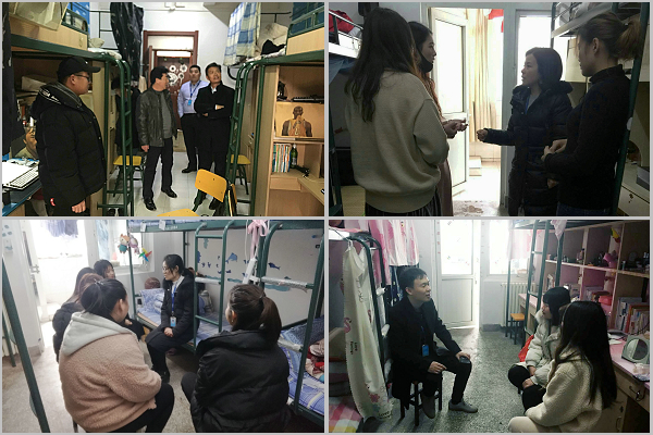 24日下午,学院领导班子带领全体辅导员,深入学生宿舍与学生进行细致交谈,了解学生假期生活情况、返校思想动态和开学初的学习生活状况,对宿舍的安全和卫生情况进行了仔细的检查,并提醒同学们注意保管财物、及时给家人报平安。
