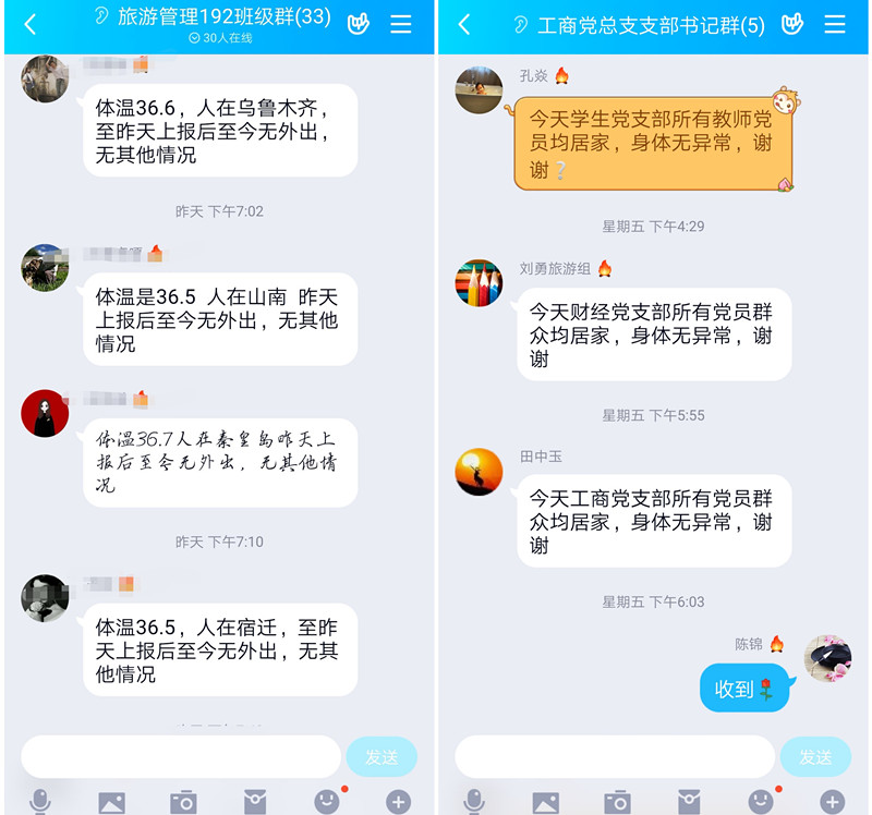 学院严格落实疫情防控“日报告、零报告”制度,启动 “学院-年级-班级”三级学生疫情防控体系、“党总支-党支部”两级教职工疫情防控体系,各班级及党支部信息员坚持每天逐一联系、不漏一人,全面核查师生健康状况,按时按要求逐级上报,实现了师生信息排查全覆盖和信息上报及时准确。