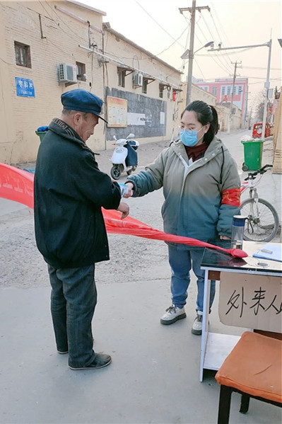 与其他大学志愿者在山西省长治市沁县西河底村疫情检查站志愿服务