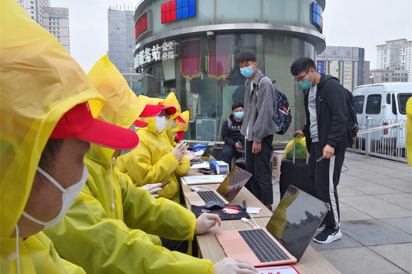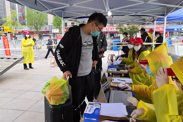 学校在车站、机场设置了醒目的接站指示,在接站老师全程引导下,返校学生有序到达接站工作点,进行消毒、测温、核验登记信息、领取座位号后登上专车,直接返回学校。