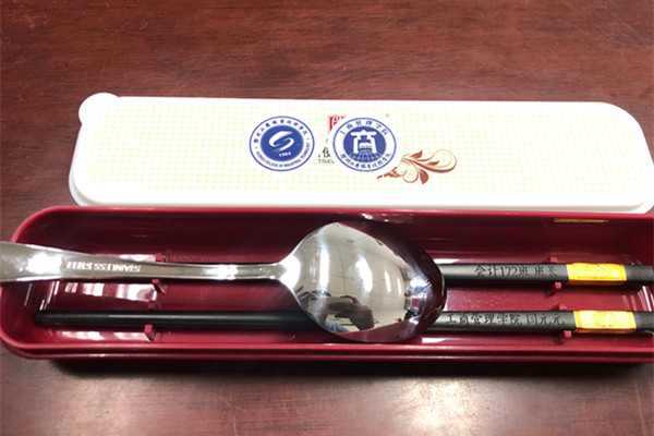 从早上六点半的早操到晚上十点半的查寝,从宿舍安全卫生到晚自习的纪律检查,学生干部一直忙碌在学院学生工作的第一线,为学院各项工作的顺利开展做出了不懈的努力和贡献。曹老师为每一位学生干部送上了一份纪念品——餐具套装,餐具套装里的筷子上刻着每一位学生干部的职务和名字,同学们在拿到毕业礼物后非常感动,纷纷表示这么独一无二的纪念品一定要好好珍惜。
