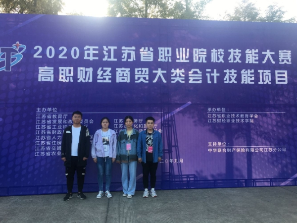 我院财会专业由邹澍华和陆群两位老师指导的赵凯、张凌霄、周莉、陈昊然四位同学在2020年江苏省职业院校技能大赛高职财经商贸大类会计技能项目获得三等奖。