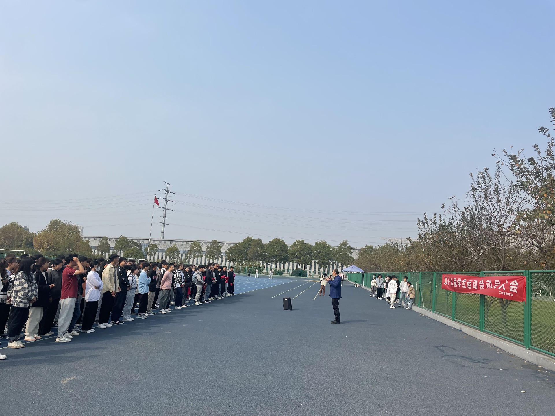 2021年10月29日中午1点10分,由工商管理学院学生会主办的运动会动员大会在操场举行。学院党总支副书记闫文、团总支书记曹远森出席了本次动员大会,学院学生会全体成员及参赛运动员、广播操训练队、表演方阵参加了此次大会,曹远森担任主持人。