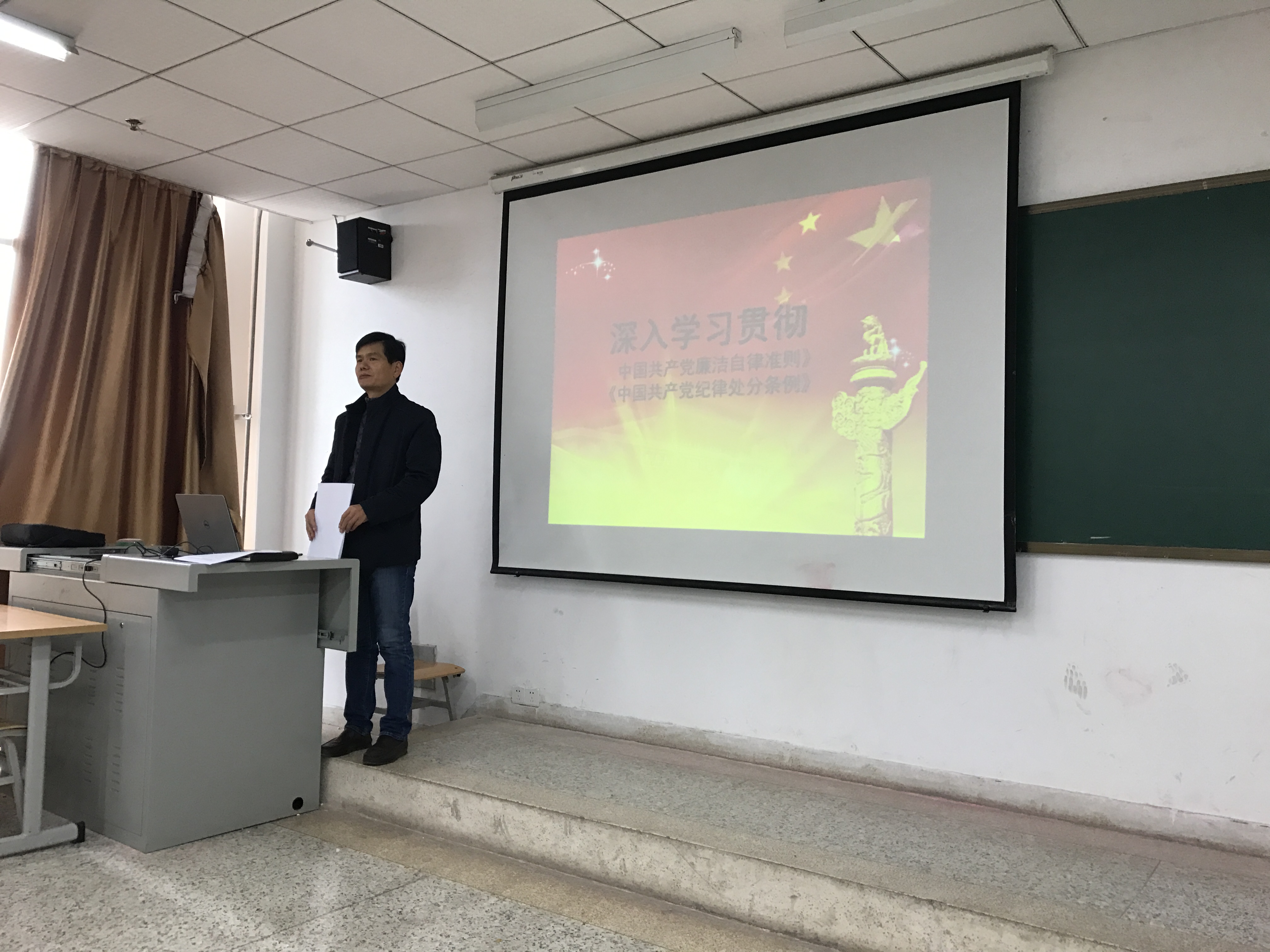 12月16日,工商管理学院召开全体党员大会,会议主题是继续深入学习《中国共产党纪律处分条例》以及《中国共产党廉洁自律准则》。这是学院党员在张恒中书记带领导的第二次学习,目的是为了让每一条条例和准则能入眼入耳入心,牢记在心在脑,做人做事有规有矩。