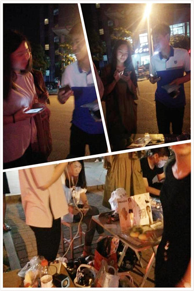 为传播“双创”文化活动节主题思想,营造良好校园创新创业氛围,推动“人人创业、大众创新”,5月26日晚,工商管理学院部分学生因受到双创文化节的宣传影响,自发在学校主干道旁边挑战了自我,尝试自我突破,做到了先销售自己,再销售产品的能力。四组创客摆出了自己的产品,想方设法地进行销售。此次活动烘托了校园气氛,增添校园新气象,培养了学生交际能力与自我创业意识。