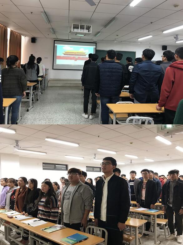 为了增强我院学生爱国意识,促进团支部建设,激发全体团员为国家、社会奉献的积极性和主动性,树立学院的良好精神风貌,同时也为了将爱国行动落到实处,工商管理学院在全院推行周一早上八点升国旗活动。学院团总支学生会成员精心制作了升国旗Flash,在每个周一早上第一节课上课前,在授课老师的组织下,近900名学生在各自上课的教室集体起立,面向幕布上缓缓上升的国旗,和着音乐,唱起了庄严的国歌。